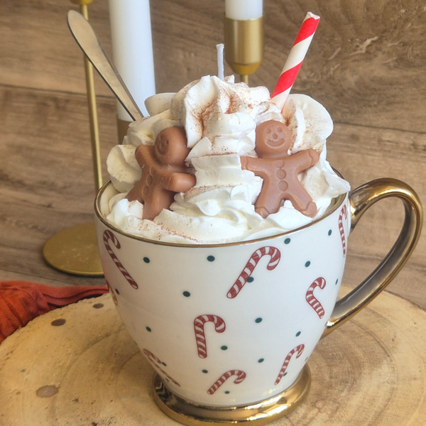 Plongez dans la magie de Noël avec cette magnifique bougie artisanale au parfum chaleureux de pain d’épices, un véritable voyage olfactif au cœur des fêtes. Coulée à la main dans un mug décoré de motifs de Noël avec dorure, elle allie élégance et ambiance festive.