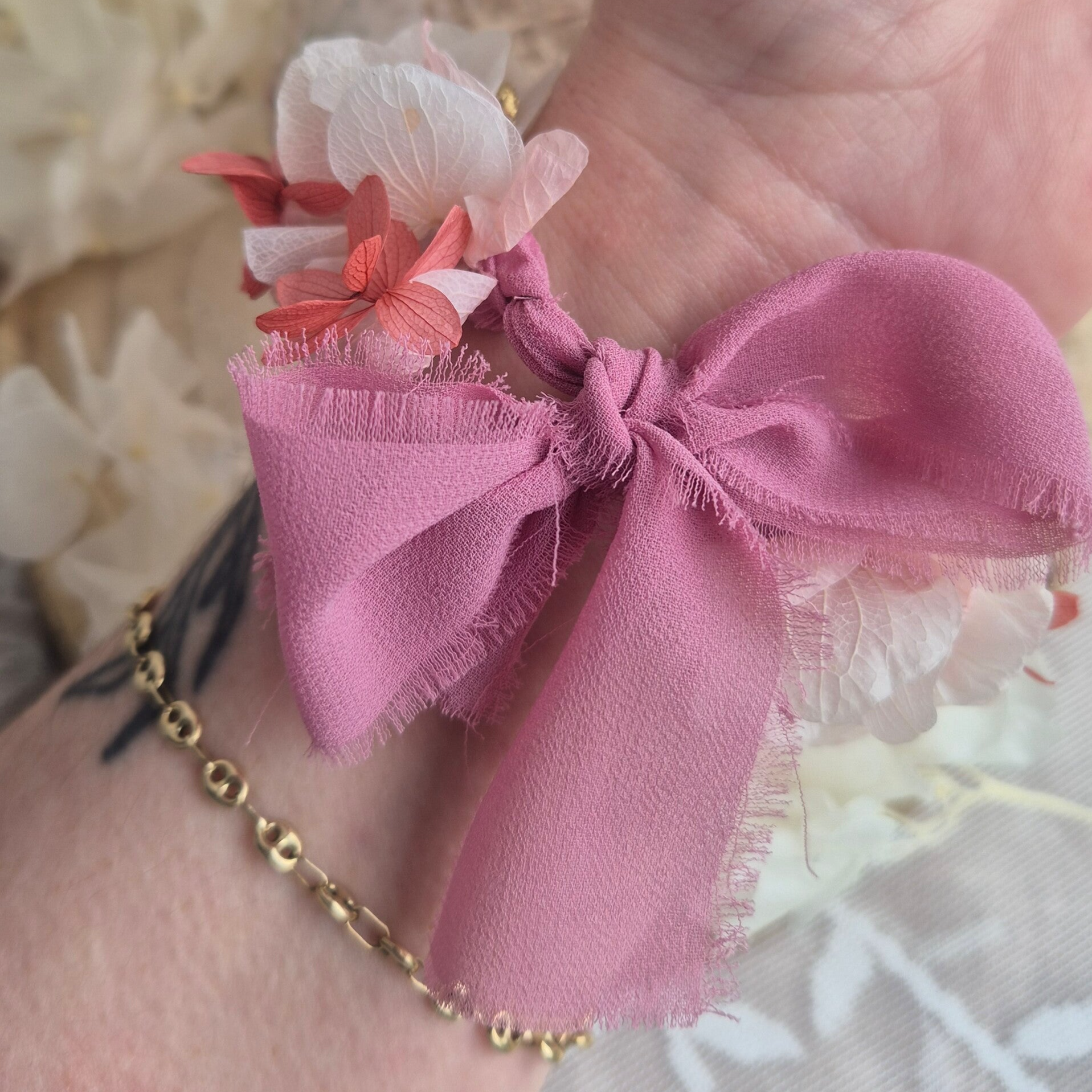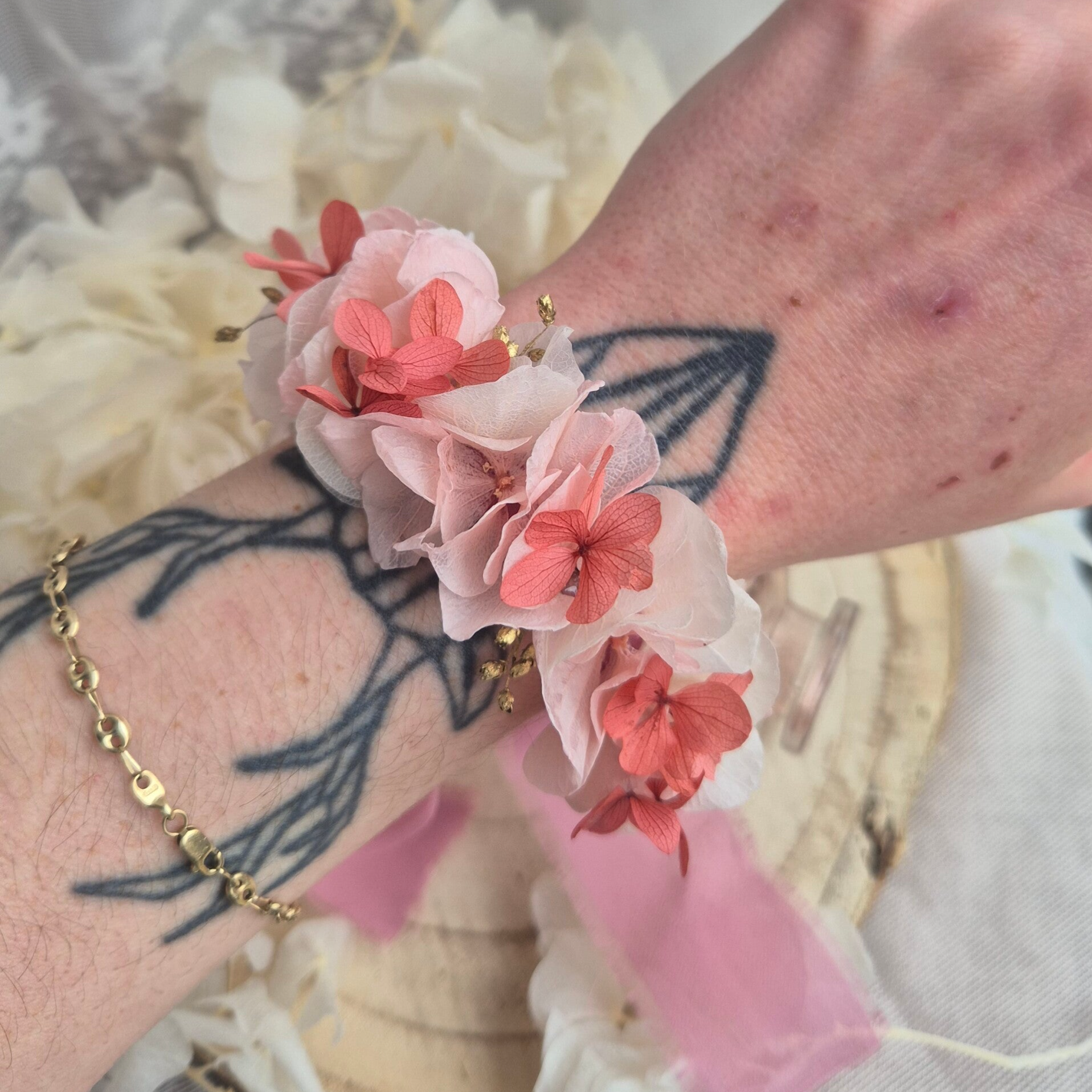 Idéal pour un mariage bohème, champêtre ou romantique, ce bracelet floral apporte une note naturelle et élégante à votre cortège.