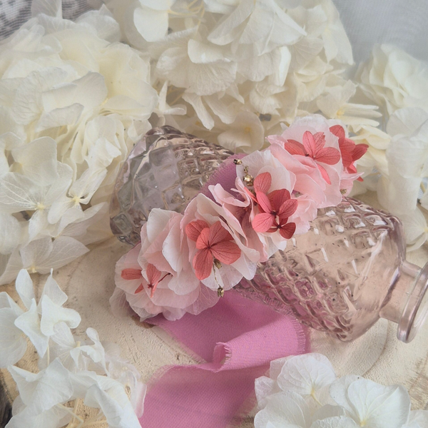 Bracelet façon couronne de fleurs rose
